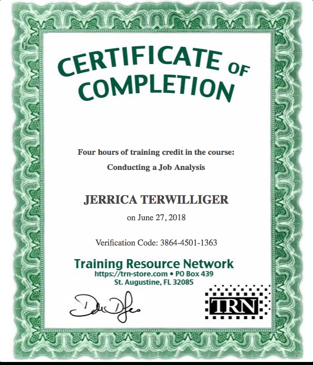Certificate for User Jerrica Terwilliger