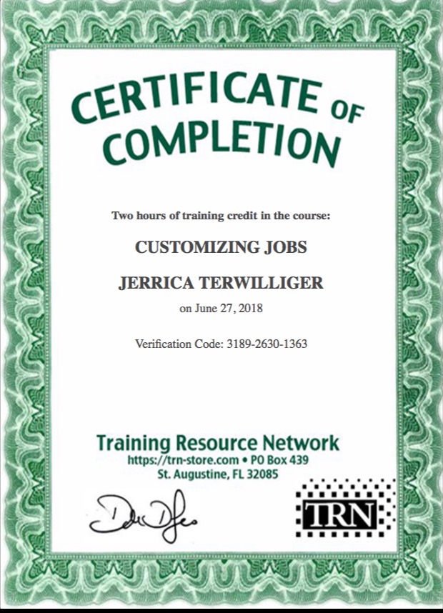 Certificate for User Jerrica Terwilliger