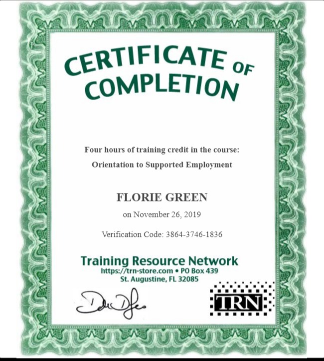 Certificate for User Florie Green